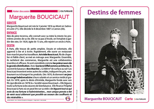 Ce support d’animation destiné aux personnes âgées de vos structures ou à domicile est consacré aux destins exceptionnels de femmes françaises. 12 femmes sont ici mises à l’honneur à travers des cartes biographiques qui viennent en appui d’un diaporama. De la première femme à avoir effectuer le tour du monde à celle qui a été la première à passer son baccalauréat, toutes ont permis, à travers leur exemple, de faire avancer la condition de la femme dans la société.