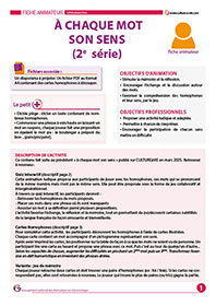 Pour compléter cette activité, les participants peuvent également découvrir les homophones à l’aide de cartes illustrées et s’essayer à construire des phrases les contenant. Cette activité peut être proposer en animation intergénérationnelle.