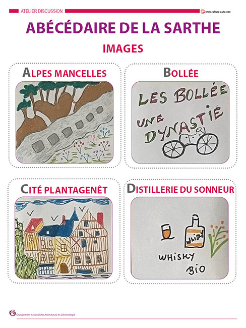 Cette exposition créée sous la forme d’un abécédaire est consacrée à la Sarthe. Réalisé par les résidents de la structure de Caroline, il est mis à disposition pour les structures du département et pour les autres la fiche animateur et un fichier Word vous permettra de créer votre propre abécédaire.