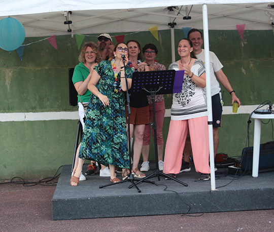 Sarah aime faire chanter au micro avec elle tous les résidents et animateurs qui le veulent bien.