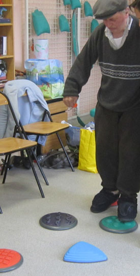 Maria propose ici un atelier équilibre et prévention des chutes d’une durée de 45 minutes à destination de personnes qui peuvent se tenir debout. Échauffement, exercices et retour au calme sont détaillés minute par minute.