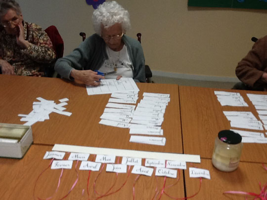 Un calendrier personnalisé à fabriquer en plusieurs ateliers. Grâce à des manipulations simples qui demandent peu de dextérité, il peut être réalisé par le plus grand nombre. Facile et pratique, il permet à chacun de conserver dans sa chambre les dates qui lui sont chères. Anniversaires, fêtes, anniversaire de mariage, décès, chaque résident prépare «ses dates à retenir» avant de venir fabriquer son calendrier. Cet outil est à la fois rassurant et utile pour les personnes ayant des troubles de la maladie d'Alzheimer.