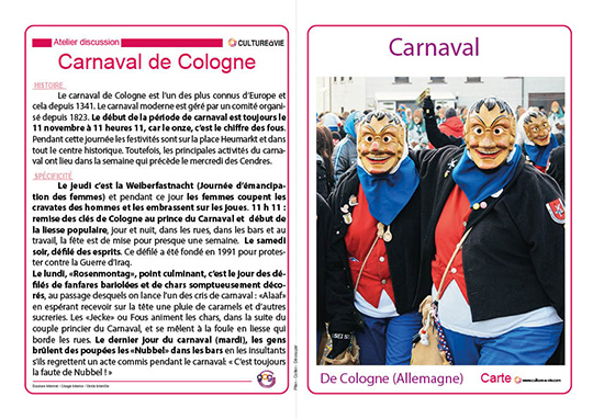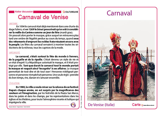 Contenu utilisé cette année lors d'un atelier discussion sur le Carnaval. Les images (projetées), puis le contenu des cartes ont permis d'engager des discussions avec/entre les résidents.