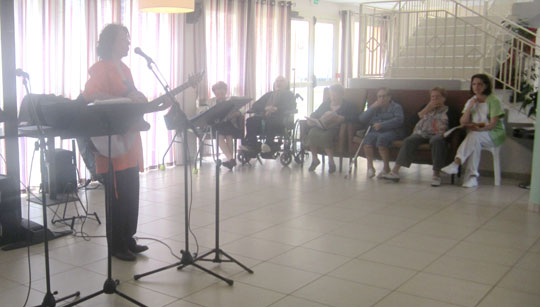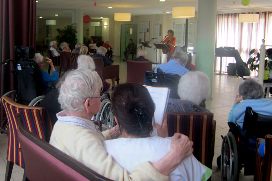 Auteur-compositeur et interprète, Joëlle chante régulièrement en établissements pour personnes âgées. L'artiste propose à la fois des reprises et des compositions personnelles pour offrir aux résidents un choix de morceaux des plus variés. Par le biais de livrets préalablement distribués, les anciens peuvent choisir parmi 60 reprises et 20 compositions. L'intervenante dispose de 2 microphones supplémentaires pour celles et ceux qui ont le goût de venir chanter pour l'assemblée. Les textes proposés permettent de sortir des "classiques" 3e âge et de découvrir ou redécouvrir d'autres auteurs plus contemporains ainsi que ses propres créations. Temps d'intervention : environ 1 h 30 Zone d'intervention : départements 07/26/34/38/69/73/74/84 Recommandé par les Ehpad de Tournon-sur-Rhône (Ardèche) et de Châteauneuf-de-Galaure (Drôme) Coût prestation : 200 € (au delà de 100 km autour de Marges prévoir frais de déplacements en plus) Infos : www.joellelambert.com Contacts : joellelambert7@gmail.com - 06.09.34.10.78/ 04.75.71.54.08