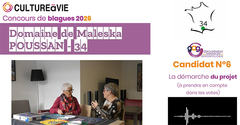Voici la vidéo du sixième participant au concours de blagues et anecdotes. Il s'agit de la résidence seniors du domaine de Maleska à Poussan dans l’l’Hérault.