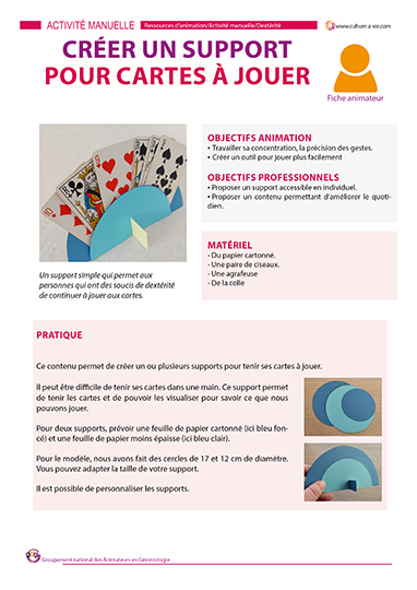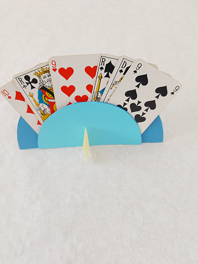 Ce contenu permet de créer un support de cartes à jouer pour les personnes qui ont des difficultés à tenir leurs cartes en main. Ce support leur permet de jouer en autonomie.