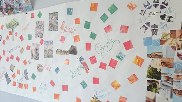 Sophie partage cette réalisation créée avec des personnes de l’unité protégée de l’établissement où elle travaille. Un atelier qui mêle différentes notions pour s’adapter au plus grand nombre (choix de photos, découpage, collage, peinture). Un temps d’échange autour des passions de chacun a permis de mieux se connaître et de créer une fresque qui leur ressemble.