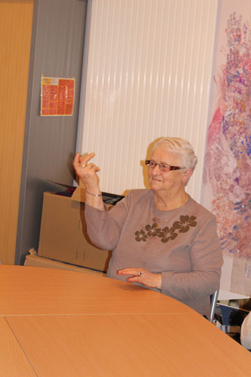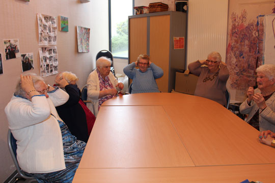 Laura propose un atelier qui fait appel à la gestuelle et à la mémoire tout en s’amusant. Choisir un geste, demander à son voisin d’en face de le reproduire, voilà qui fait marcher la mémoire mais également les zygomatiques car les gestes se transforment rapidement en grimaces. A partager sans modération !