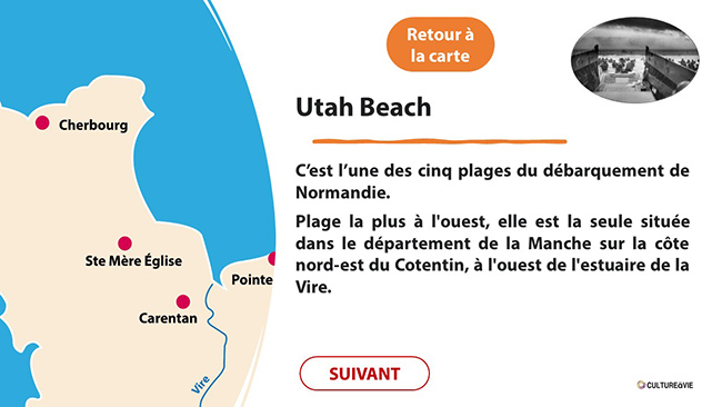 Vous trouverez ici un diaporama interactif qui permet de découvrir les interventions sur les 5 plages : Utah, Omaha, Gold, Juno et Sword. Découvrez les actions qui ont eu lieu sur chaque plage en cliquant sur le visuel correspondant sur la première diapositive.