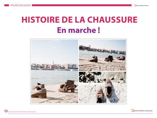 Ce diaporama reprend l’histoire de la chaussure de la préhistoire à nos jours. Autrefois symbole de force, de pouvoir ou de richesse, la chaussure est aujourd’hui un accessoire de mode à part entière qui se décline au gré de l’imagination des créateurs. Ce sujet basé sur un élément de la vie quotidienne invitera chacun et chacune à s’exprimer sur l’importance que revêtait cet accessoire dans leur vie de tous les jours.