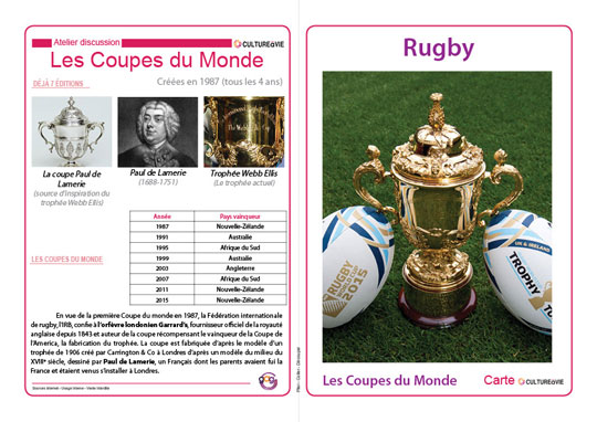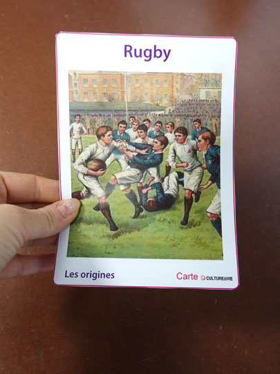 A l’occasion du tournoi des six nations de rugby, vous pouvez organiser un atelier-discussion autour de l’histoire de ce sport et des grands joueurs du XXe siècle en diffusant le diaporama ou en partageant les informations des cartes. Pour annoncer cet atelier vous pouvez vous servir de l’affiche et des invitations jointes. Penser à « dézipper » le diaporama avant de le projeter en faisant un clic droit sur le dossier «extraire tout ».