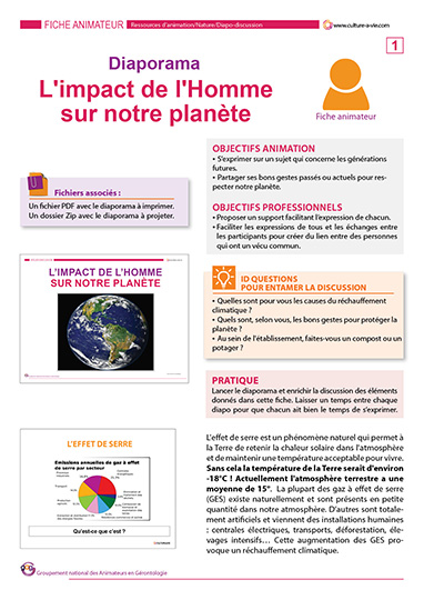 Quel impact l’activité humaine a-t-elle sur notre environnement et notre planète ? C’est le sujet de ce diaporama qui pose le constat du réchauffement climatique avec une projection des effets suivi des solutions qui peuvent ralentir ce phénomène. L’occasion pour les aînés de s’exprimer sur un sujet qui concerne tout le monde et sur lequel il est intéressant d’apporter son regard et son avis.
