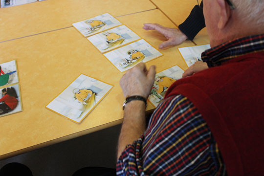Dix scènes de la vie quotidienne ont ici été photographiées et divisées en 6 images. L’objectif de cet exercice est de remettre la scène dans l’ordre. Faire les courses, payer à la caisse, se raser, se laver le visage, se maquiller, sortir de la maison, planter une fleur, débarrasser la table, s’habiller et s’occuper du linge sont autant de scènes reprises ici avec la collaboration d’une neuropsychologue. L'altération des capacités de planification est fréquente dans le cadre des pathologies neuro-dégénératives et notamment de la maladie d'Alzheimer. Cet exercice permet de favoriser le maintien des étapes nécessaires à la réalisation de séquences d'action fréquemment rencontrées dans la vie quotidienne.Un support adapté à une animation individuelle