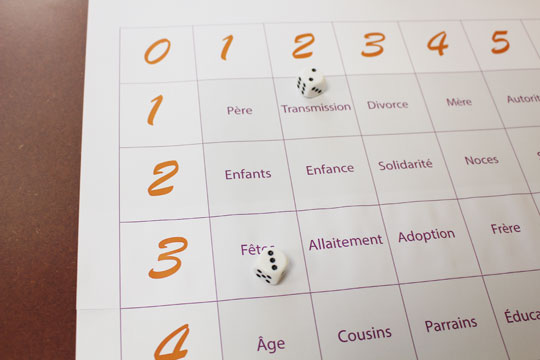 Laetitia a créé un jeu plateau où des mots, appartenant à un même thème (famille, loisirs, vacances...) ou mixant plusieurs thèmes permet aux joueurs de partager un souvenir ou un élément de leur vie avec les autres. Un atelier-discussion décliné en jeu pour en savoir un peu plus sur la vie de chacun.
