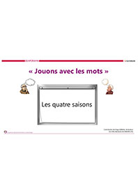 Dans ce diaporama quiz, Hugo propose de retrouver des mots auxquels il manque des lettres. Deux indices sont proposés pour le trouver, une image et une définition. Le thème porte sur Les quatre saisons. Ce jeu rapide permettra aux aînés d’exercer leur attention en cherchant les lettres manquantes, de façon ludique.