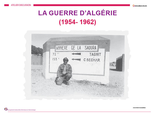 Mars 2021 marque le 59e anniversaire de la fin de la guerre d’Algérie. Retrouvez un vaste choix de contenus (cartes de l’Algérie, cartes à thème, témoignages, diaporama…) autour du conflit pour revenir avec les résidents sur ce fait historique. Tous les contenus en lien avec ce thème sont à retrouver dans le THEME Fêtes calendaires - RUBRIQUE : Guerre d'Algérie