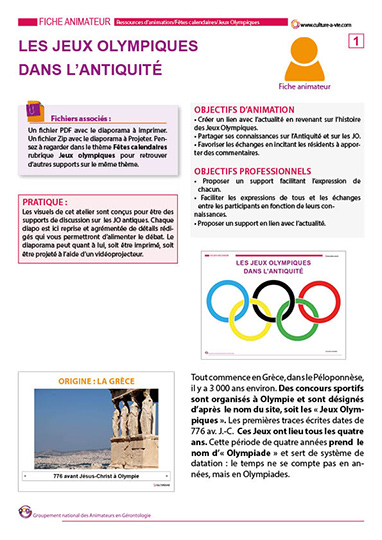 La Grèce est connue pour être le berceau des Jeux Olympiques. Ce diaporama, alimenté par des informations fournies dans la fiche animateur, vous permettra de remonter le temps pour suivre le déroulement des JO il y a 3 000 ans. N'oubliez pas de "dezipper" le diaporama avant de le lancer.
