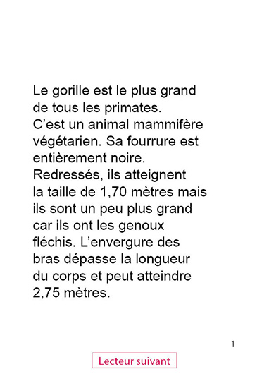 Ce livre, créé par Christiane et son équipe sur le thème du gorille, est destiné aux personnes présentant des troubles cognitifs tels qu’Alzheimer. Inspiré de la méthode Montessori, ce livre permet une lecture autonome lors d’un atelier lecture. Christiane donne, dans la fiche animateur la manière dont elle utilise ce support afin que chacun puisse se sentir valorisé et avoir un sentiment d’appartenance à un groupe.