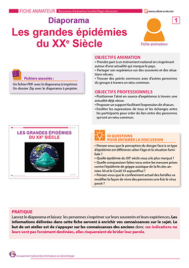 Les personnes accueillies au sein des établissements de retraite n'en sont pas à leur première épidémie. Nous vous proposons de les inviter à s'exprimer sur ce sujet, sur leur expérience, sur leurs souvenirs à travers un diaporama qui récapitule les pandémies du XXe siècle. Grippe espagnole, grippe asiatique, grippe de Hong-Kong et grippe aviaire ont elles aussi décimé le monde depuis 1918.