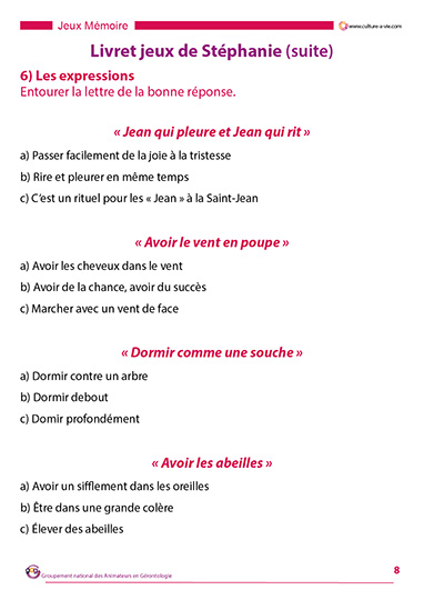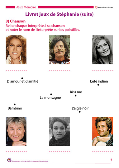 Pour aider les personnes qui restent en chambre à se divertir, Stéphanie propose une série de jeux : « Qui est-ce ? », repérer des monuments, identifier des chanteurs et leurs titres, et diverses questions afin d’aborder la culture générale tout en s’amusant. Les corrections sont données à la suite des questions.