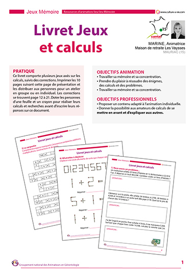Pour aider les personnes qui restent en chambre à se divertir ou pour un support en groupe, Marine propose une série de jeux pour solliciter les fonctions cognitives et faire travailler la mémoire de travail. Ce contenu s’adresse à des personnes ayant de bonnes capacités de concentration et certains exercices demandent un bon niveau en mathématiques. Ce contenu est adapté à de l’animation individuelle.