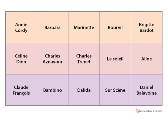 Stéphanie propose de varier le jeu du loto toujours très apprécié des résidents en remplaçant les chiffres par des questions sur le thème de la chanson. 90 questions en lien avec les connaissances musicales des aînés sont proposées et des cartons contenant les réponses permettent de jouer selon la règle traditionnelle.