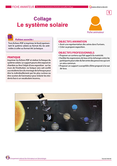 Ce contenu célèbre la journée mondiale des astéroïdes qui a lieu le 30 juin. Ce support d’animation permettra aux résidents de reconstituer le système solaire et de repérer la ceinture d’astéroïdes. Laquelle sera agrémentée d’astéroïdes à découper et à coller. Une façon ludique pour repérer la place des astres dans le système solaire, en faisant appel à la motricité. Un lexique « Astronomie » complète le contenu. En complément vous pouvez télécharger le quiz sur les astéroïdes.