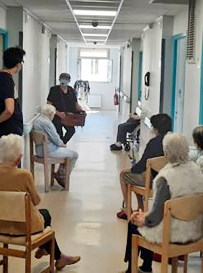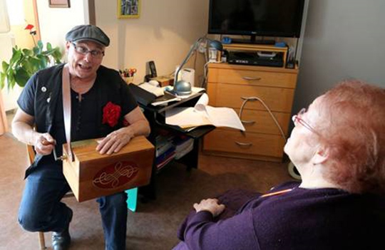 Tour de chant musette, chanson française et variété accompagné à l’orgue de Barbarie et à la Ritournelle. Spectacle fixe amplifié avec Orgue de Barbarie ou ambulatoire avec la Ritournelle sous forme de « Musique de chambre » ou « Musique de salon ». Un musicien proche des résidents avec un répertoire adapté à leurs attentes, il ne manque pas une occasion de faire participer les personnes et sait mettre l’ambiance. La déambulation permet de passer de chambre en chambre sans être obligé de réunir un grand nombre de personnes dans un même lieu.