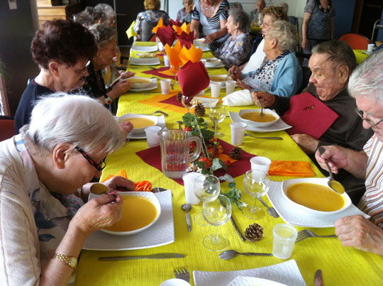 L’équipe d’animateurs des établissements du Creusot a travaillé pendant plusieurs mois avec des résidents volontaires autour de la soupe afin de participer à un événement municipal, la symphonie des soupes. Un concours auquel se sont préparé les résidents à travers différents ateliers tels que la rédaction d’un livret sur l’histoire de la soupe, la création de décorations et bien sûre la mise au point d’une recette de soupe suivie de sa préparation.
