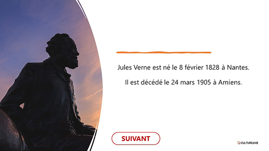 Ce quiz à projeter permettra de retrouver le parcours de vie de ce célèbre écrivain d’une manière interactive ainsi que quelques-unes de ses œuvres majeures. Pour chaque question posée, des propositions sont données, les personnes devront trouver la bonne réponse. Créé sous forme de QCM, la réponse à chaque question s'affiche en vert en un clic (il faut cliquer sur les réponses proposées pour découvrir la bonne réponse qui s'affiche en vert). Ce quiz composé de 27 diapositives apportera des connaissances supplémentaires ou complémentaires à chacun.