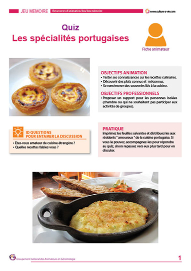 Ce quiz présente des spécialités culinaires typiques du Portugal. 20 questions, 3 propositions de réponses pour chaque question. Les réponses sont données en fin de quiz. Un support sur mesure pour les personnes d’origines portugaises ou les passionnées de ce pays méditerranéen.