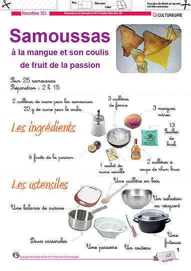 Recette de cuisine 3D Crème Samoussas mangue passion