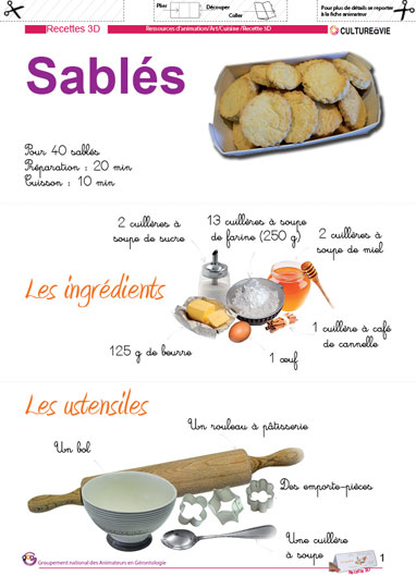 Des recettes « 3D » à imprimer et à assembler en pupitre pour ne laisser apparaître qu’une étape à la fois. Le triangle pupitre imaginé pour les recettes permet d’avoir à portée de vue seulement l’étape en cours. Il tourne au fur et à mesure des étapes. Ce support est adapté aux personnes présentant des troubles liés à la maladie d'Alzheimer. Des recettes simples ou un peu plus difficiles à choisir en fonction des cuisiniers.