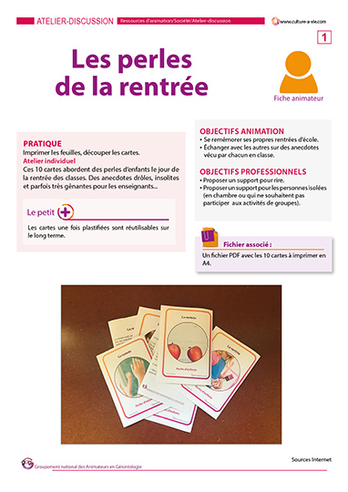 Ce contenu d’animation à destination des personnes âgées est composé de 10 cartes facilement transportables en chambre pour une animation individuelle. Ces cartes sont composées de 10 échanges drôles d’enfants avec leur maîtresse. Des mots d’enfants à partager sans modération et qui permettent de raviver les souvenirs des parents concernant leurs propres enfants.