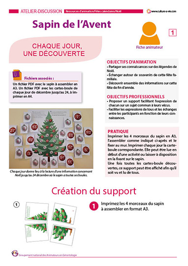 Vous pouvez associer ce contenu au sapin de l’Avent à reconstituer pour afficher les différentes cartes-boules qui correspondent à chaque boule du sapin afin d’en faire profiter toutes les personnes de la structure.