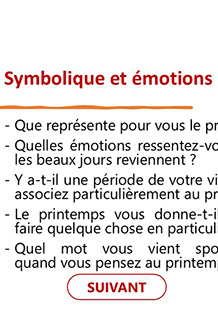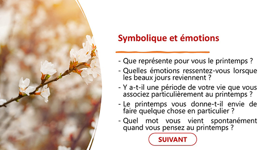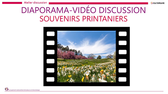 Un diaporama contenant huit vidéos en rapport avec le printemps permettra aux aînés d’échanger sur leurs sentiments, leurs sensations, leurs souvenirs, histoires, en lien avec ce moment de l’année. Chacune des vidéos est suivie d’une diapositive contenant des questions pour encourager la discussion.