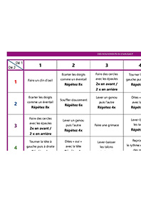 Cette activité fait suite aux autres activités proposées sur Culture à Vie, d’une série intitulée « Des mouvements en s’amusant ». Elle est destinée aux personnes âgées pour encourager une mobilité douce, travailler la coordination, tout cela dans un cadre convivial, d’une façon ludique et dynamique. Un tableau à double entrées est proposé en fichier Word et PDF pour effectuer l’activité, ou à s’approprier. Cette activité est réalisée à l’aide de 2 dés.