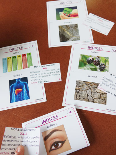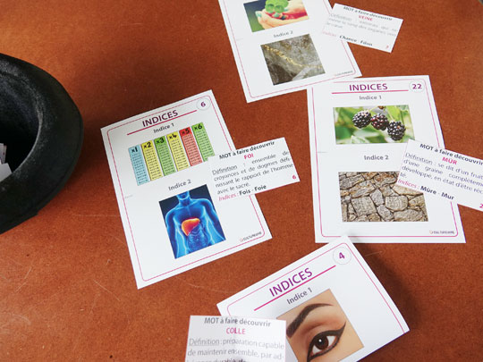 Ce contenu permet de jouer avec les synonymes et les homonymes de façon ludique. Des cartes donnent la définition du mot à trouver et des indices visuels qui sont des synonymes ou des homonymes du mot aident à trouver le bon mot. 25 mots sont à trouver.