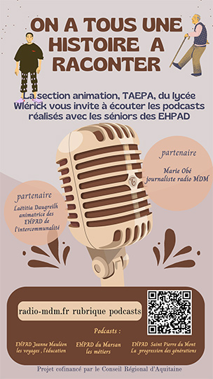 Dans ce projet Catherine, enseignante en bac pro animation, détaille le projet de création potcasts radio intitulé « On a tous une histoire à raconter » mené par les élèves qu’elle encadre en partenariat avec les services animations de 3 Ehpad de la ville et la radio locale. Un projet de 2 années où chacun a pu partager souvenirs, histoires et anecdotes tout en créant du lien avec les jeunes.