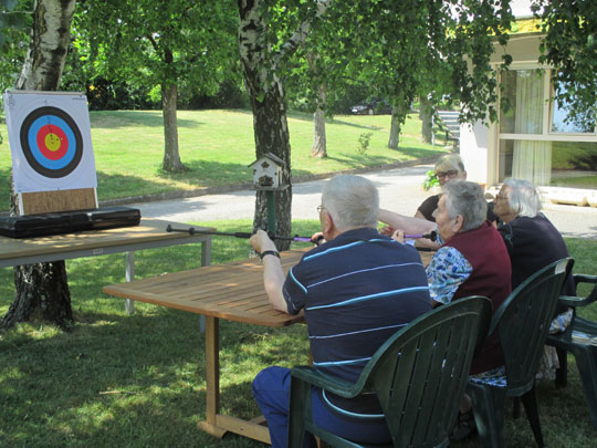 Aussi étonnant que cela puisse paraître l’activité sarbacane permet de garder la forme. Sous la forme du jeu, voire de la compétition entre les résidents, Catherine a mis en place cette activité qui entre dans la catégorie des activités physiques adaptées. Avec un minimum d’encadrement, tirer à la sarbacane est accessible à l’ensemble des personnes vivant en établissement de retraite. La sarbacane est un moyen naturel pour développer la force des organes internes en travaillant le souffle. Catherine détaille la technique pour une bonne utilisation de la sarbacane ainsi que ses bienfaits.