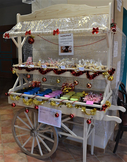 Une charrette pour vendre les réalisations des résidents