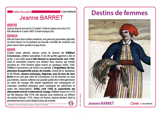Ce support d’animation destiné aux personnes âgées de vos structures ou à domicile est consacré aux destins exceptionnels de femmes françaises. 12 femmes sont ici mises à l’honneur à travers des cartes biographiques qui viennent en appui d’un diaporama. De la première femme à avoir effectuer le tour du monde à celle qui a été la première à passer son baccalauréat, toutes ont permis, à travers leur exemple, de faire avancer la condition de la femme dans la société.