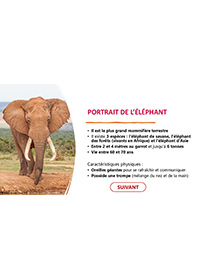 Ce diaporama, accompagné de sa fiche animateur, vous emmène à la découverte de l’éléphant. Ses caractéristiques avec quelques infos insolites, des vidéos sonores, un quiz et de belles images à imprimer pour continuer la discussion dans la structure autour de cet animal plein de sagesse. Le diaporama est disponible en format PDF mais il ne contient pas les vidéos.