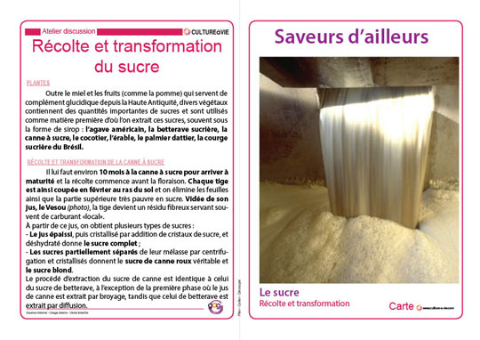 Par des cartes décryptant l’origine, la transformation et l’utilisation du sucre, un diaporama quiz et une fiche mots croisés, ces supports proposent de mieux connaître ce produit. Un produit de première nécessité qui cache également bien des gourmandises. N'oubliez pas de "dezipper" le diaporama avant de le lancer.