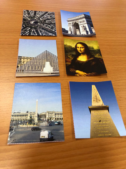 Ce contenu comporte 2 séries de 10 images. Réalisé sur le thème de Paris, l’objectifs est d’associer un monument ou un objet à un lieu. Un bon moyen de partager ses souvenirs de visites ou de découvrir les lieux emblématiques de la capitale.