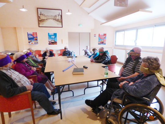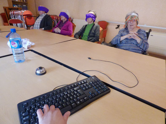 Pauline a proposé un atelier atour de la mémoire auditive aux personnes de son établissement. Les yeux bandés, les aînés se sont concentrés pour retrouver des sons de la vie quotidienne. Chaise déplacée, feuilles froissée, téléphone… sont autant de sons reconnaissables par tous. Un atelier qui permet d’intégrer des personnes mal voyantes et ainsi pour les autres de mieux comprendre leur handicap quotidien.