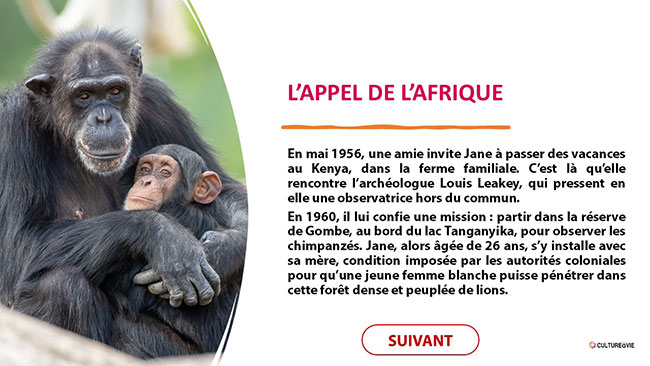 Ce support d’animation destiné aux personnes âgées en structures est réalisé sous la forme d’un diaporama à projeter. Il est consacré à Jane Goodall, militante, éthologue, primatologue et anthropologue britannique décédée le 1re octobre 2025. Jane Goodall a consacré sa vie au service du vivant, à l’étude des chimpanzés et à la protection de la nature. Pour aller plus loin, vous pouvez retrouver ses livres et films sur son site officiel.