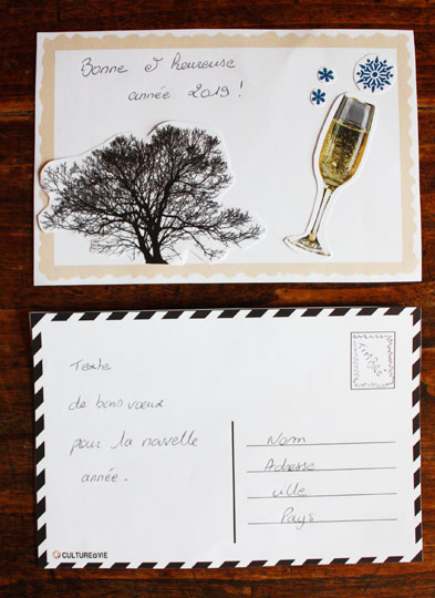 Ce support permettra aux personnes de créer leur propre carte de Vœux à partir de visuels à découper et à coller. Un atelier création qui permettra à chacun d’échanger autour de ses habitudes de correspondances et de conserver un lien avec ses proches.