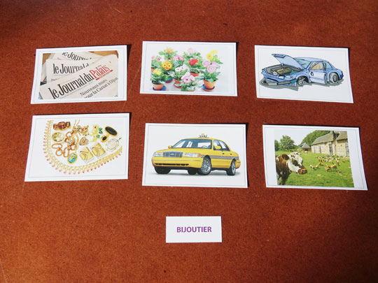 Sophie a créé des cartes représentant des métiers à retrouver. Les noms de métiers sont proposés aux résidents qui doivent retrouver la carte métier correspondante. Ce support est adapté aux personnes présentant des troubles cognitifs type Alzheimer.