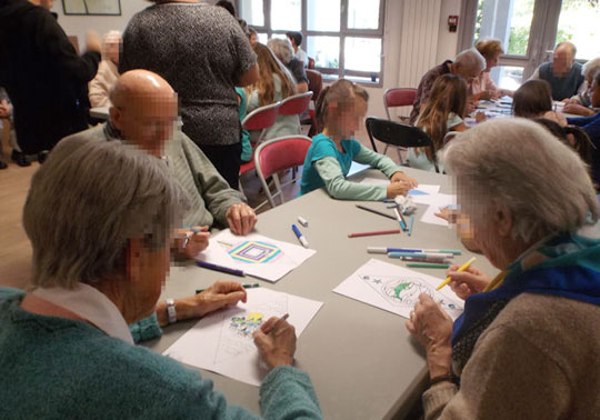 Cécile partage ici des atelier artistiques autour de la création d’un mandala. Réalisé en atelier avec les résidents ou accompagnés d’enfants, cette activité permet à chacun de laisser libre cours à son sens créatif avec la satisfaction de participer à une œuvre collective. Ce support est adapté aux personnes présentant des troubles liés à la maladie d'Alzheimer.